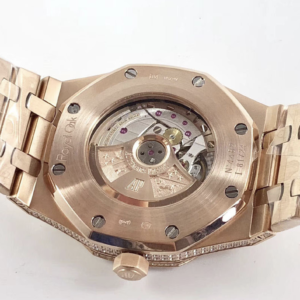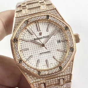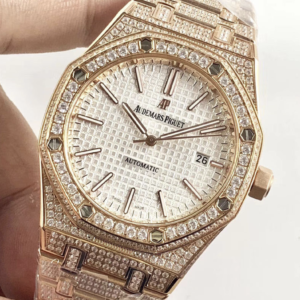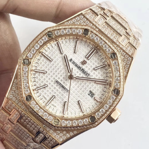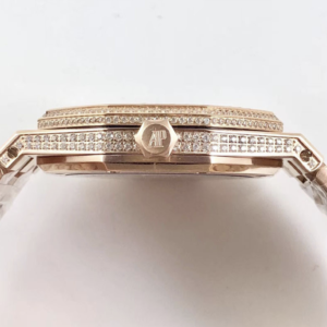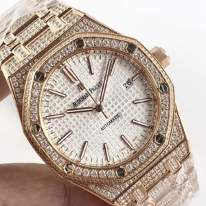 Audemars piguet replica royal oak 41mm rose gold full paved diamonds white dial