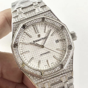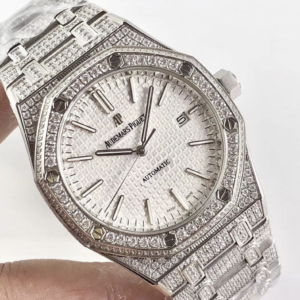 Audemars piguet replica royal oak 41mm white gold full paved diamonds white dial