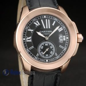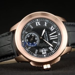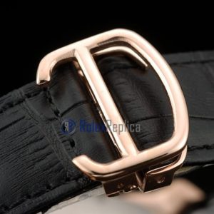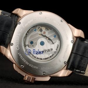 Cartier replica calibre skeletron rose gold black strip leather imitazione copia