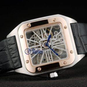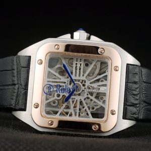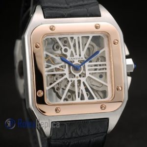 Cartier replica santos 100 skeletron strip leather acciaio rose gold imitazione copia