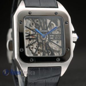Cartier replica santos 100 skeletron strip leather ceramichon imitazione copia