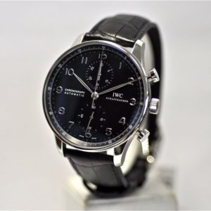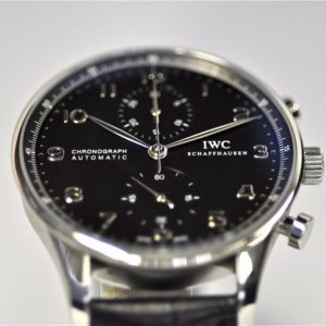 iwc replica portoghese chrono black dial strip leather orologio imitazione