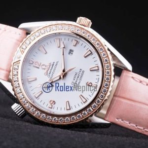 Omega replica seamaster co-axial rosè lady strip leather imitazione copia