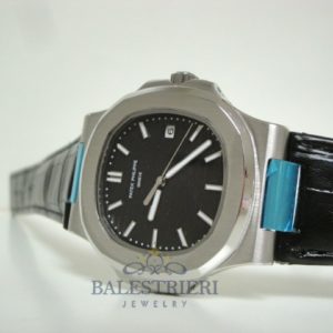 patek philippe replica nautilus acciaio black dial strip leather orologio imitazione