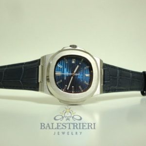patek philippe replica nautilus acciaio blue dial strip leather orologio imitazione