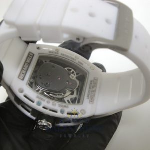 - Cassa fresata dal pieno con i più moderni strumenti dell’ alta orologeria in acciaio Inox 904 AISI L, realizzata su base originale con strumenti di disegno al CAD. Le casse sono tutte timbrate e serigrafie come in originale: numero di matricola da un lato tra le ansette e numero di referenza richard mille skull replica