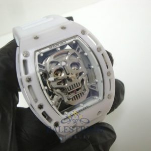 richard mille replica skull nano RM052 ceramic skeletron special edition white strip rubber-b
