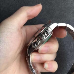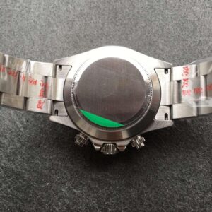 - Cassa fresata dal pieno con i più moderni strumenti dell’ alta orologeria in acciaio Inox 904 AISI L, realizzata su base originale con strumenti di disegno al CAD. Le casse sono tutte timbrate e serigrafie come in originale: numero di matricola da un lato tra le ansette e numero di referenza con dicitura: rolex original design dall’ altro lato tra le ansette Rolex replica daytona