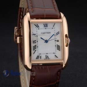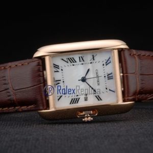 Cartier replica tank americaine oro strip leather brown white dial imitazione copia